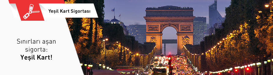 Yeşil Kart Sigortası ile siz ülkeler* arası seyahat ederken, biz karışabileceğiniz kazalar sonucunda zarar görebilecek araç veya üçüncü şahıslara karşı masraflarınızı koruma altına alıyoruz.